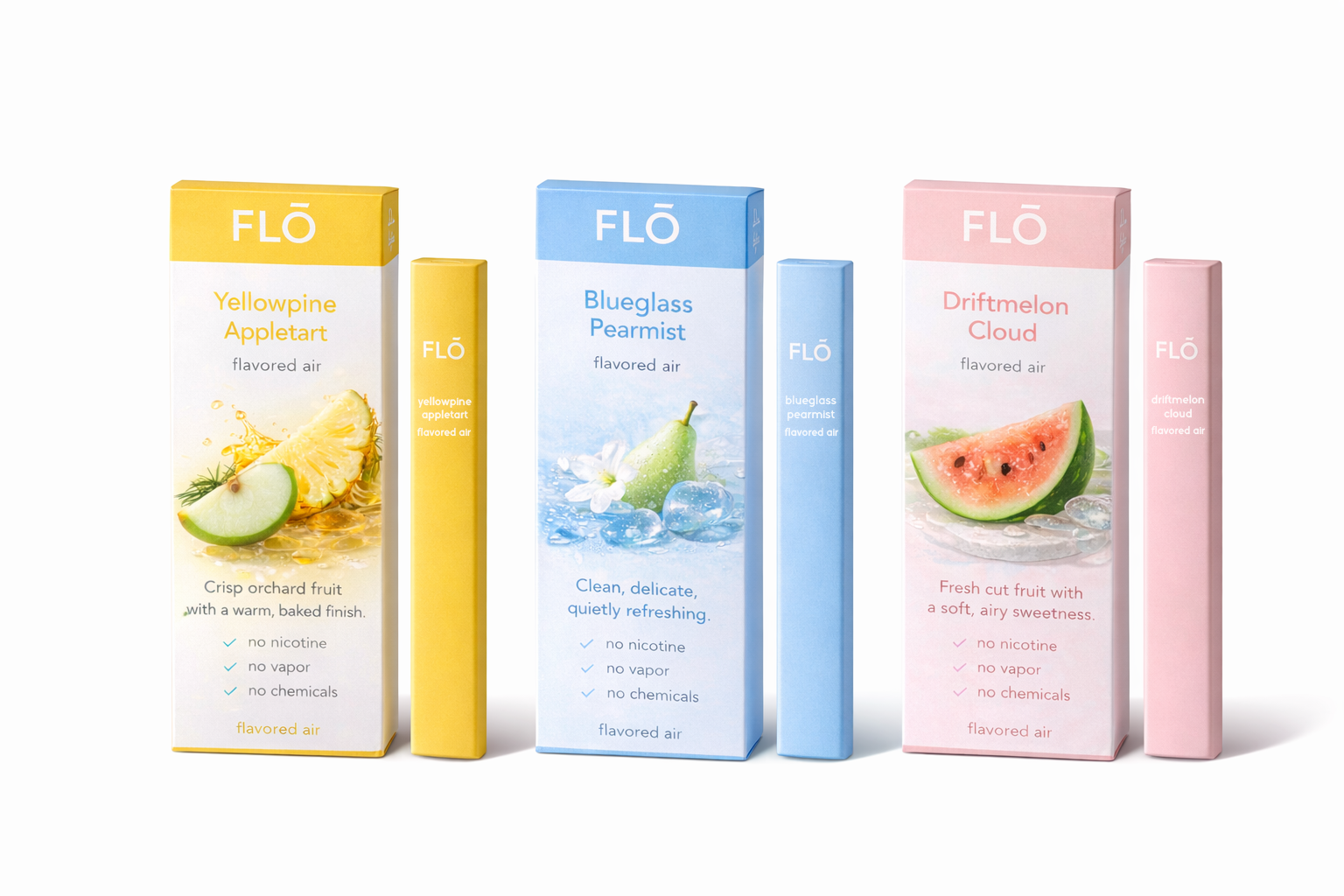 FLO Air is a concept design which prop products were used in order to create a feature for the first round of funding. These product mock-ups were completed using Photoshop primarily as well as heavy cardstock, printed and photographed at a home studio.