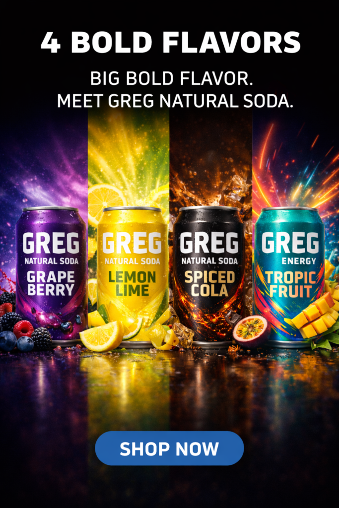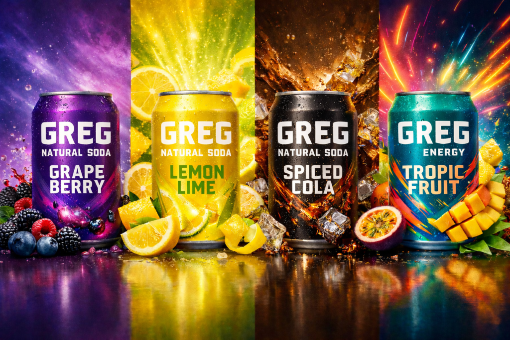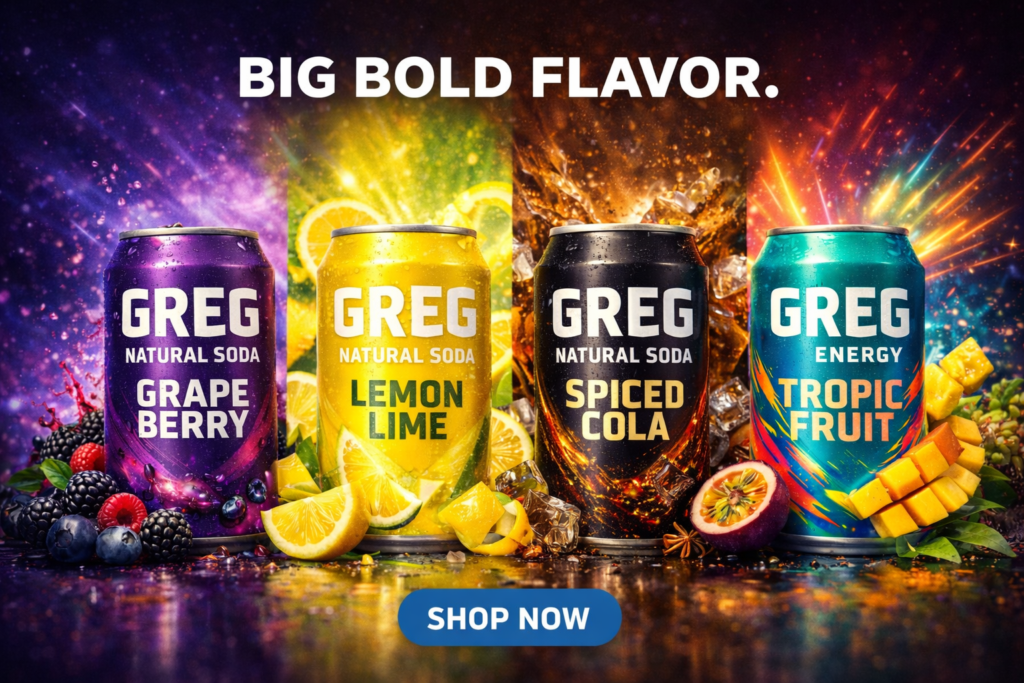 GREG is the soda king. His bold flavors outmatch all other sips. If you need proof you'll find it where you find any major refreshments. Just look for GREG.